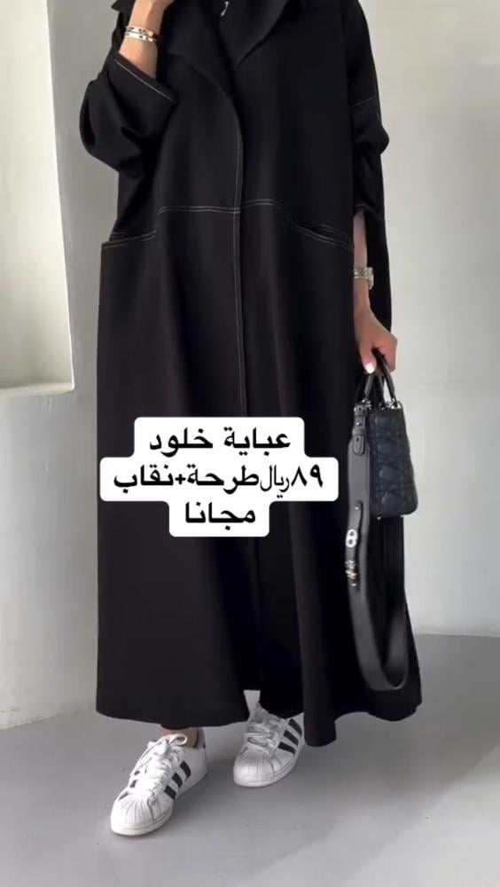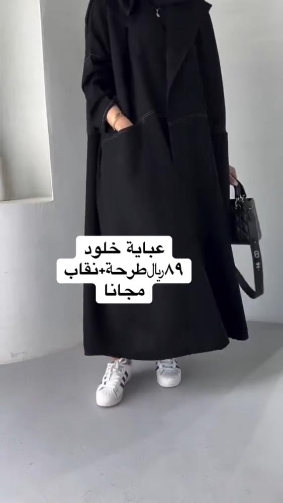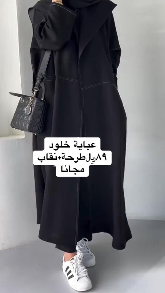 طول العباية يؤخذ من الكتف الى أسفل الكعبين (من الأمام)